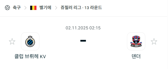 2025년 11월 02일에 열리는 벨기에 퍼스트 디비전A 클럽 브뤼헤와 덴더 경기 분석입니다. 이번 경기는