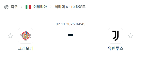 2025년 11월 02일에 열리는 세리에A 크레모네세와 유벤투스 경기 분석입니다. 이번 경기는