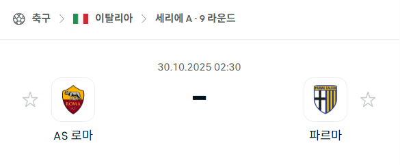 [이탈리아 세리에A] 2025년10월30일 AS 로마 vs 파르마 분석 중계