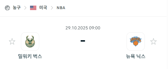 [미국 NBA] 2025년10월29일 밀워키 벅스 vs 뉴욕 닉스 분석 중계