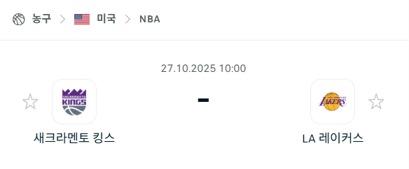 [미국 NBA] 2025년10월27일 새크라멘토 킹스 vs LA 레이커스 분석 중계