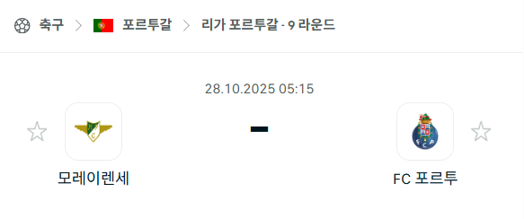 [포르투갈 프리메이라리가] 2025년10월28일 모레이렌세 vs 포르투 분석 중계
