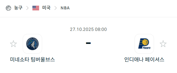 [미국 NBA] 2025년10월27일 미네소타 팀버울브스 vs 인디애나 페이서스 분석 중계