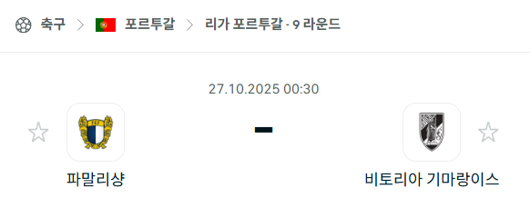 [포르투갈 프리메이라리가] 2025년10월27일 파말리상 vs 비토리아 기마랑이스 분석 중계
