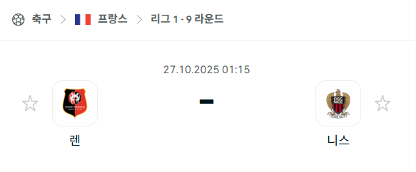 2025년 10월 27일에 열리는 프랑스 리그 1의 스타드 렌과 니스 경기 분석입니다. 이번 경기는