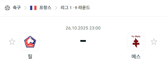 [프랑스 리그앙] 2025년10월26일 릴 vs 메츠 분석 중계