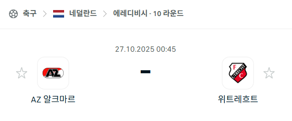 2025년 10월 27일에 열리는 네덜란드 에레디비시 AZ 알크마르와 위트레흐트의 경기 분석입니다. 이번 경기는