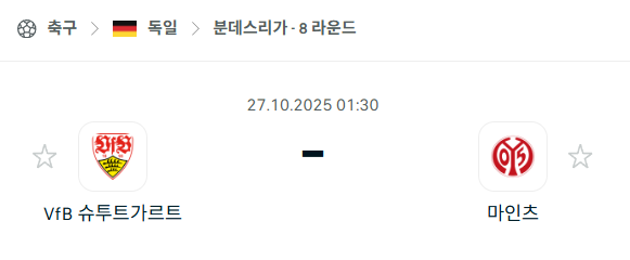 2025년 10월 27일에 열리는 독일 분데스리가 슈투트가르트와 마인츠 경기 분석입니다. 이번 경기는 리그 8라운드 마지막 경기로, 상반된 흐름 속에서 맞붙는 두 팀의 대결입니다.