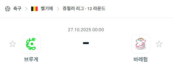[벨기에 프로리그] 2025년10월27일 브루게 vs 바레험 분석 중계