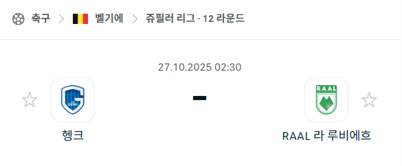 [벨기에 프로리그] 2025년10월27일 헹크 vs 라루비에르 분석 중계