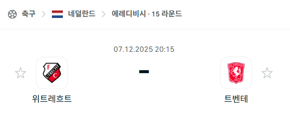 [네덜란드 에레디비시] 2025년12월07일 위트레흐트 vs 트벤테 분석 중계