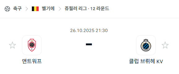 [벨기에 프로리그] 2025년10월26일 앤트워프 vs 클럽 브뤼헤 분석 중계