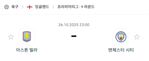 [EPL 프리미어리그] 2025년10월26일 아스톤 빌라 vs 맨체스터 시티(맨시티) 분석 중계