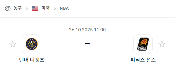 [미국 NBA] 2025년10월26일 덴버 너게츠 vs 피닉스 선즈 분석 중계
