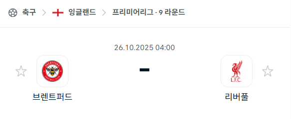 [EPL 프리미어리그] 2025년10월26일 브렌트포드 vs 리버풀 분석 중계