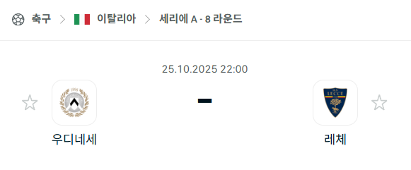 2025년 10월 25일에 열리는 세리에A의 우디네세 칼초와 레체 경기 분석입니다. 이번 경기는 시즌 초반 불안한 흐름 속에서 분위기 반전을 노리는