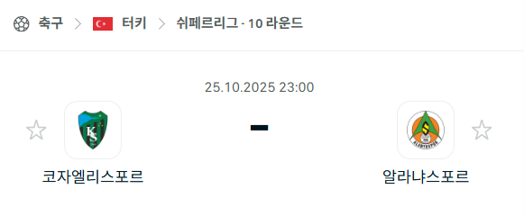 [터키 쉬페르리그] 2025년10월25일 코자엘리스포르 vs 알라니아스포르 분석 중계