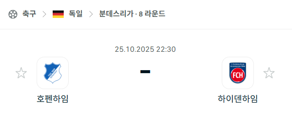[독일 분데스리가] 2025년10월25일 호펜하임 vs 하이덴하임 분석 중계