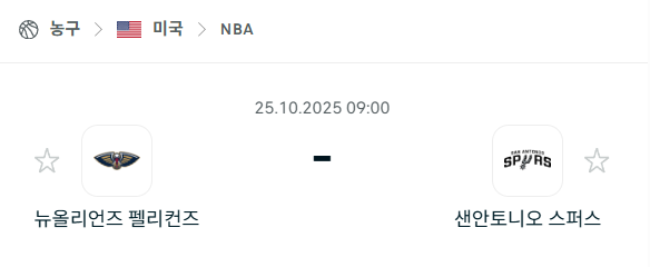 [미국 NBA] 2025년10월25일 뉴올리언스 펠리컨스 vs 샌안토니오 스퍼스 분석 중계