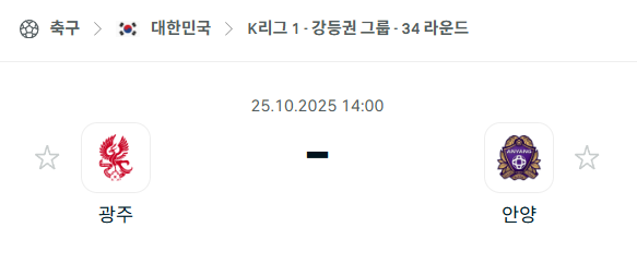 2025년 10월 25일에 열리는 K리그 1 광주 FC와 FC 안양 경기 분석입니다. 이번 경기는