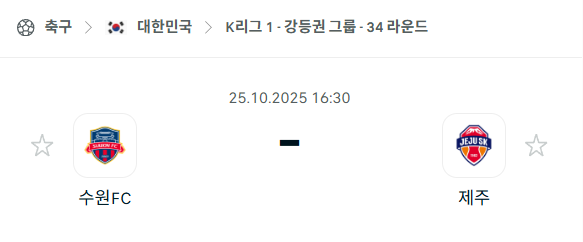 2025년 10월 25일에 열리는 K리그 1 수원 FC와