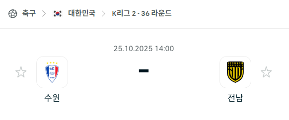 [대한민국 K리그2] 2025년10월25일 수원 삼성 vs 전남 드래곤즈 분석 중계