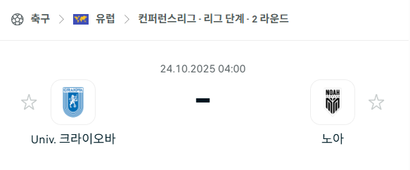 [UEFA 컨퍼런스리그] 2025년10월24일 크라이오바 vs 노아 분석 중계