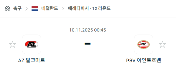 2025년 11월 10일에 열리는 에레디비시의 AZ 알크마르 PSV