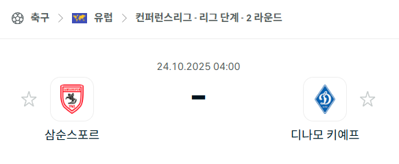 [UEFA 컨퍼런스리그] 2025년10월24일 삼순스포르 vs 디나모 키예프 분석 중계