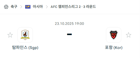 [AFC 아시아챔피언스리그2] 2025년10월23일 탐파인스 vs 포항 스틸러스 분석 중계