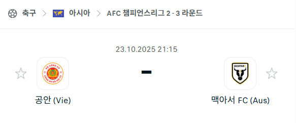 [AFC 아시아챔피언스리그2] 2025년10월23일 공안 vs 맥아서 분석 중계