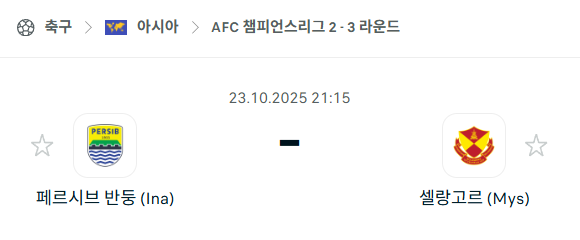 [AFC 아시아챔피언스리그2] 2025년10월23일 퍼시브 반둥 vs 셀랑고르 분석 중계