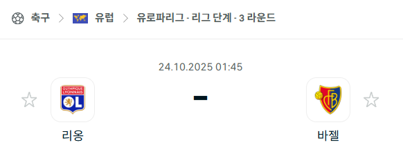 [UEFA 유로파리그] 2025년10월24일 리옹 vs 바젤 분석 중계