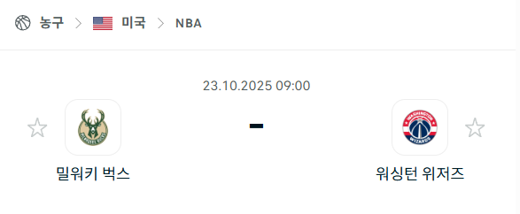 2025년 10월 23일에 열리는 NBA 밀워키 벅스와 워싱턴 위저즈 경기 분석입니다. 이번 경기는