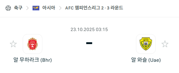 [AFC 아시아챔피언스리그2] 2025년10월23일 알무하라크 vs 알와슬 분석 중계