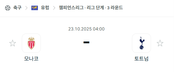 [UEFA 챔피언스리그] 2025년10월23일 AS AS 모나코 vs 토트넘 분석 중계
