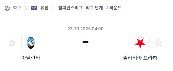 [UEFA 챔피언스리그] 2025년10월23일 아탈란타 vs 슬라비아 프라하 분석 중계