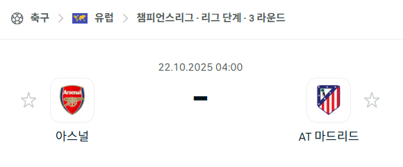 [UEFA 챔피언스리그] 2025년10월22일 아스날 vs 아틀레티코 마드리드 분석 중계