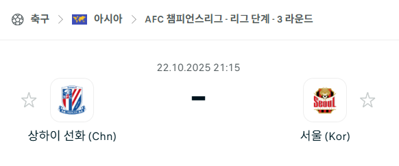 [AFC 아시아챔피언스리그] 2025년10월22일 상하이 선화 vs FC서울 분석 중계