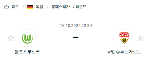 [독일 분데스리가] 2025년10월18일 볼프스부르크 vs 슈투트가르트 분석 중계