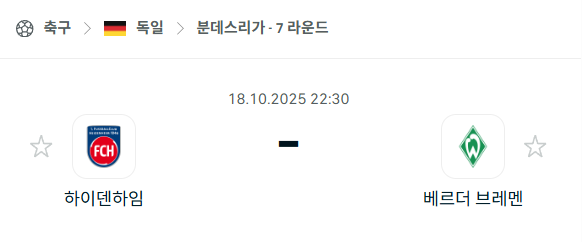 [독일 분데스리가] 2025년10월18일 하이덴하임 vs 베르더 브레멘 분석 중계
