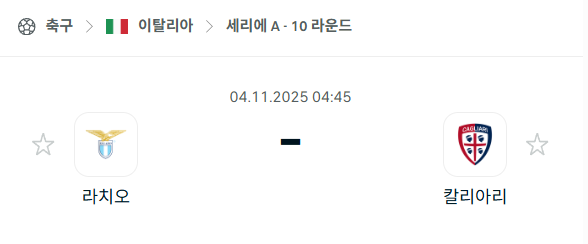 [이탈리아 세리에A] 2025년11월4일 라치오 vs 칼리아리 분석 중계