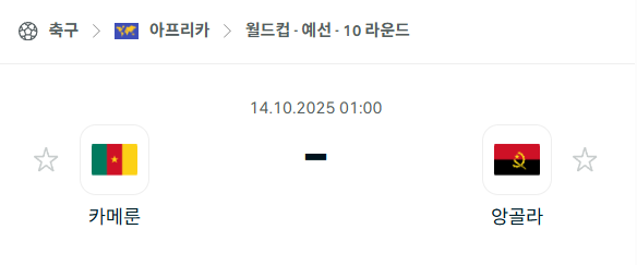 2025년 10월 13일에 열리는 월드컵 아프리카 예선 카메룬과 앙골라 경기 분석입니다. 이번 경기는 그룹 D의 마지막 라운드로,