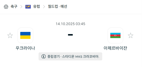 [유럽 월드컵예선] 2025년10월14일 우크라이나 vs 아제르바이잔 분석 중계