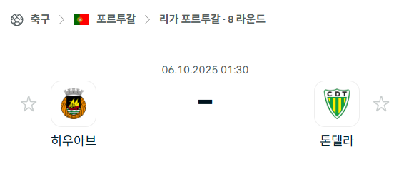 [포르투갈 프리메이라리가] 2025년10월6일 히우아브 vs 톤델라 분석 중계