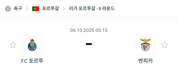 [포르투갈 프리메이라리가] 2025년10월6일 포르투 vs 벤피카 분석 중계