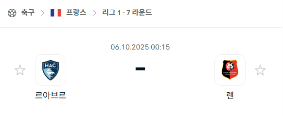 [프랑스 리그앙] 2025년10월6일 르아브르 vs 스타드 렌 분석 중계