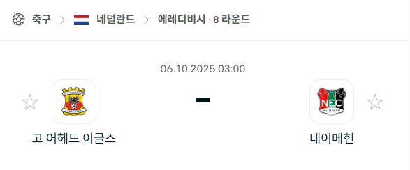 [네덜란드 에레디비시] 2025년10월6일 고어헤드이글스 vs 네이메헌 분석 중계