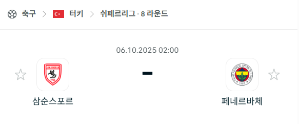 [터키 쉬페르리그] 2025년10월6일 삼순스포르 vs 페네르바체 분석 중계