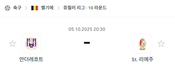 [벨기에 프로리그] 2025년10월5일 안더레흐트 vs 스탕다르 리에주 분석 중계